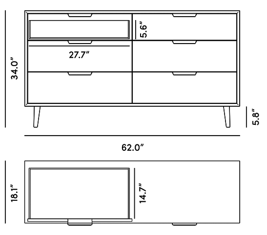 • Inner drawer dimensions 27.7 wide x 14.7 depth x 5.6 height