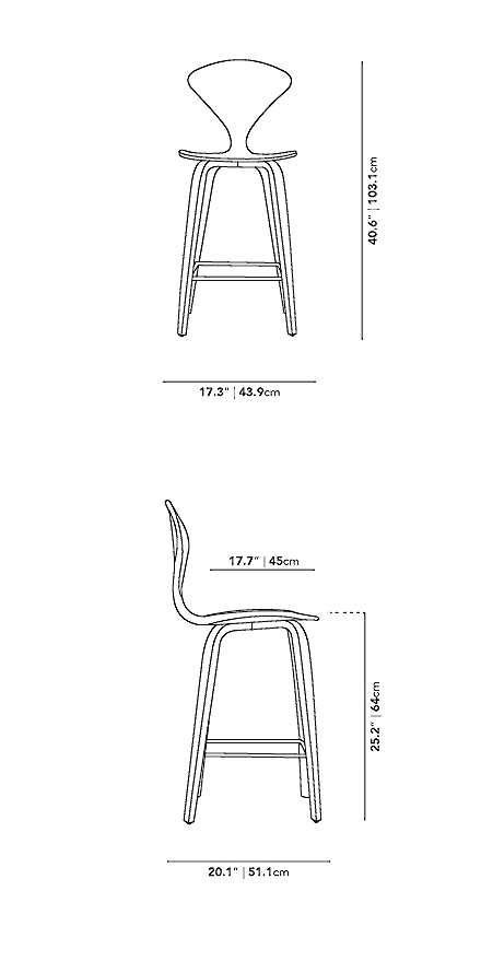 The classic and shapely Norman Counter Stool is one of the most iconic pieces of mid-century furniture. This molded plywood chair offers not only timeless appeal and sophistication, but also comfort and stability. Designed with tapered legs, a generous curved seat, and a concave backrest that is widest at the shoulders, the contoured form lets the body relax easily. The Norman Counter Stools organic, streamlined shape allows it to feel at home in all environments.