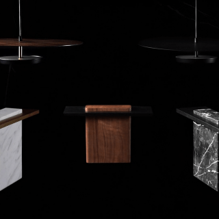 - Available in walnut veneer or matte black finish
